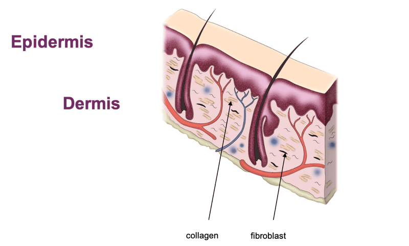 Kollagen är ett protein som bygger dermis (läderhuden). Det är kollagen som ser till att huden håller sig spänstig och slät. Men i takt med ökad ålder bryts kollagenet ner och gör huden rynkigare. Ungefär en tredjedel av kroppens protein utgörs av kollagen.