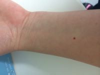 Körsbärsfläckar eller Cherry Spots är små röda kärlknutor på bålen. De kommer med åren och är helt ofarliga. Om de skadas kan de blöda. Om de växer och blir större kan det vara svårt att urskilja demn från andra hudtumörer.